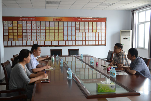 2015年6月23日上午,河北省科技廳高新處孫東偉、河北科技投資集團(tuán)有限公司副總經(jīng)理寧秋江由辛集市科技局副局長(zhǎng)趙松巖陪同,來我公司調(diào)研。公司董事長(zhǎng)劉占查、總經(jīng)理曹艷爽帶領(lǐng)他們觀看了公司榮譽(yù)室、工作廳、培訓(xùn)學(xué)校,雙方對(duì)公司未來發(fā)展及建設(shè)辛集市眾創(chuàng)空間進(jìn)行了親切融洽的座談交流。