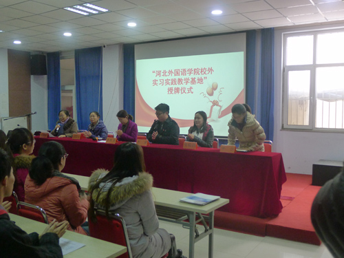 | 2016年11月15日,河北外國(guó)語學(xué)院日語學(xué)院行政院長(zhǎng)李成、河北外國(guó)語學(xué)院日語學(xué)院業(yè)務(wù)副院長(zhǎng)張桉菂、 河北外國(guó)語學(xué)院日語學(xué)院就業(yè)處處長(zhǎng)田沙攜35名大學(xué)生來公司,首先進(jìn)行了“河北外國(guó)語學(xué)院校外實(shí)習(xí)實(shí)踐教學(xué)基地”授牌儀式,公司總經(jīng)理曹艷爽、綜合事業(yè)部主任尚躍華、手冊(cè)編譯部主任強(qiáng)紅出席了授牌儀式。儀式上播放了公司宣傳片、《國(guó)超之歌》,強(qiáng)主任重點(diǎn)講解了手冊(cè)編譯部的主要業(yè)務(wù)情況,并帶領(lǐng)河北外國(guó)語學(xué)院日語學(xué)院領(lǐng)導(dǎo)及師生參觀了公司,并讓同學(xué)們參加了日語試譯活動(dòng),讓同學(xué)們體驗(yàn)了工作的感覺。公司會(huì)為實(shí)習(xí)實(shí)踐的學(xué)生提供最好的機(jī)器設(shè)備和舒適、寬松、安全有序的實(shí)習(xí)和生活環(huán)境,會(huì)委派具有較高實(shí)踐經(jīng)驗(yàn)和理論水平的人員參與實(shí)習(xí)指導(dǎo),確保學(xué)生實(shí)習(xí)實(shí)踐有良好的效果,為學(xué)生畢業(yè)后就業(yè)打下堅(jiān)實(shí)基礎(chǔ)。