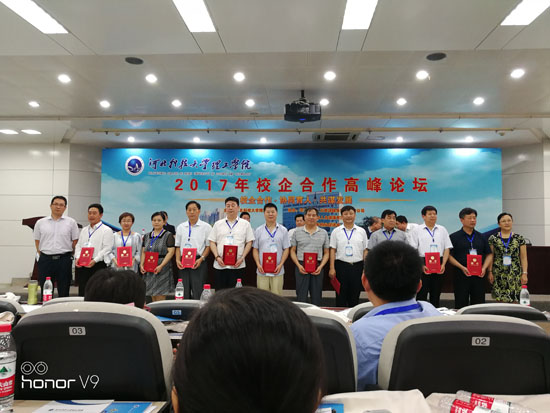 | 河北科技大學理工學院成立于2001年,是經(jīng)河北省人民政府批準、教育部首批確認,由河北科技大學舉辦的全日制本科層次獨立學院,是河北省首批應(yīng)用轉(zhuǎn)型發(fā)展試點高校。 2017年6月2日在河北科技大學學術(shù)報告廳召開了以“校企合作、協(xié)同育人、共謀發(fā)展”為主題的校企合作高峰論壇會議。 會上我公司被河北科技大學理工學院確定為“校企聯(lián)合培養(yǎng)實踐基地”,并授牌,會上我公司董事長劉占查和編譯部主任強紅心還被聘請為“校企聯(lián)合培養(yǎng)指導老師”,并頒發(fā)了聘書。