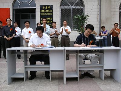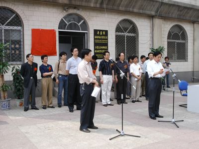 | 為了促進高新技術(shù)企業(yè)發(fā)展,培養(yǎng)科技人才,河北省科技大學(xué)把國超新技術(shù)有限公司確定為河北科技大學(xué)外國語學(xué)院教育教學(xué)實習(xí)基地。 2006年5月24日,在公司門前隆重舉行河北科技大學(xué)外國語學(xué)院教育教學(xué)實習(xí)基地揭牌儀式,出席這次儀式的領(lǐng)導(dǎo)和來賓有: 河北科技大學(xué)黨委副書記:段東 河北科技大學(xué)外國語學(xué)院黨委書記:韓驍兵 河北科技大學(xué)外國語學(xué)院院長:張森 河北科技大學(xué)外國語學(xué)院副書記:白新芳 河北科技大學(xué)外國語學(xué)院團委書記:張文林 辛集市人民政府副市長:張書凱 辛集市政協(xié)副主席:陳蘭章 馬振全 辛集市政協(xié)組聯(lián)科科長:李樹果 辛集市科技局局長:張國勛 辛集市經(jīng)貿(mào)局局長:梁建祠 辛集市工商業(yè)聯(lián)合會會長:馬建章 辛集市工商業(yè)聯(lián)合副會長:王印昭 辛集市科學(xué)技術(shù)協(xié)會主席:劉品 辛集市文體局黨組書記:韓劍 辛集市教育局副局長:魏會來