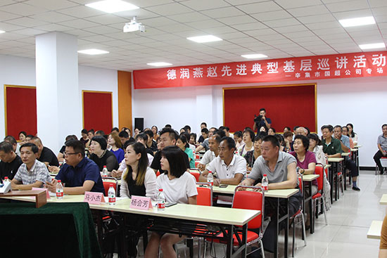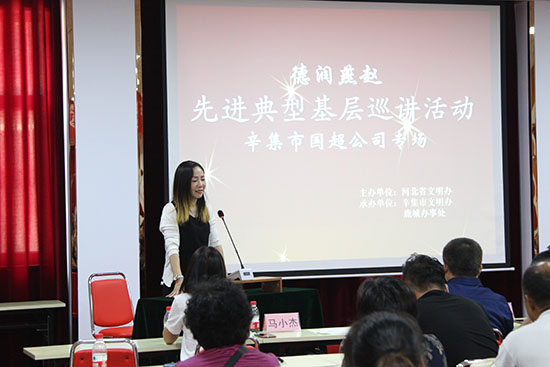 | 2019年6月25日上午,“善行河北 德潤燕趙”先進(jìn)典型基層巡講活動 辛集市國超公司專場在我公司舉辦。本次活動由河北省文明辦主辦,辛集市文明辦、鹿城辦事處承辦,地點在我公司一樓多功能會議廳。出席活動的領(lǐng)導(dǎo)有:辛集市文明辦主任曹磊、鹿城辦事處主任王書軍等。我公司總經(jīng)理曹艷爽、工會主席尚躍華帶領(lǐng)公司員工代表、鹿城辦事處代表共計100余人聆聽了報告。 鹿城辦事處主任王書軍指出,道德模范、身邊好人等先進(jìn)典型是有形的正能量,是鮮活的價值觀。各單位領(lǐng)導(dǎo)和同志要以他們?yōu)榘駱,向道德模范學(xué)習(xí),進(jìn)一步推動文明素質(zhì)的整體提升,人人參與創(chuàng)建、人人支持創(chuàng)建,為全市精神文明建設(shè)貢獻(xiàn)力量。 活動現(xiàn)場,中國好人、河北好人、河北省最美退伍兵、中國人民銀行衡水市中心支行科員郝宏銀,堅持42年幫老人、執(zhí)勤值班官兵和住校孩子們免費理發(fā)、對患絕癥卻無錢看病的戰(zhàn)友提供經(jīng)濟(jì)援助!瓣柟馀ⅰ睏顣,從小就擔(dān)負(fù)起照顧全家人的重?fù)?dān),她沒有向命運低頭,用不懈的拼搏和努力追逐著夢想,換來了人生的一縷陽光。河北省優(yōu)秀志愿者、邢臺公益服務(wù)協(xié)會秘書長、邢臺市林璋茶葉貿(mào)易有限公司負(fù)責(zé)人韓林璋,組建規(guī)范助學(xué)團(tuán)隊、策劃“揚帆護(hù)航~陽光助學(xué)”“笑臉計劃”等志愿服務(wù)活動,致力于公益事業(yè)。辛集市馬長青中醫(yī)診所中藥藥劑師馬小杰,多次組織參與志愿行動、資助貧困家庭孩子上學(xué)、聯(lián)系外國友人連續(xù)兩年資助18個因大病返貧家庭。他們用質(zhì)樸無華的語言、真摯細(xì)膩的感情進(jìn)行了講述,一個個溫暖故事、一件件平凡善舉令在場的聽眾深受感動,贏得了現(xiàn)場觀眾陣陣掌聲。大家表示,一定要學(xué)習(xí)他們對于公益活動的執(zhí)著、堅守和情懷,關(guān)心社會,奉獻(xiàn)愛心。巡講會獲得圓滿成功。
