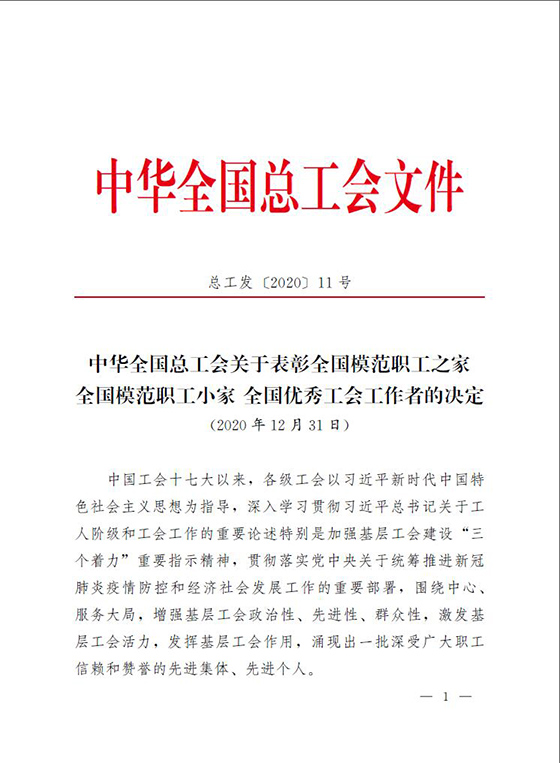 我公司圖形處理部獲得2020年全國(guó)模范職工小家榮譽(yù)稱號(hào)