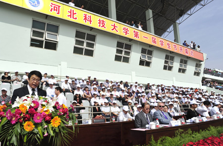| 22日上午9時河北科技大學(xué)第一屆學(xué)生節(jié)開幕式在新校區(qū)主體育場隆重舉行,河北省委副書記付志方出席開幕式并宣布學(xué)生節(jié)開幕,省人大副主任馬蘭翠,政協(xié)副主席王剛及國家教育部,中國城市規(guī)則設(shè)計(jì)研究院,河北省國資委教育廳、文化廳、省考試院的主要領(lǐng)導(dǎo)在主席臺前臺就座,開幕式由河北科技大學(xué)黨委書記衛(wèi)舸主持。校長李強(qiáng)代表高校黨政領(lǐng)導(dǎo)班子致歡迎詞。 我公司做為河北科技大學(xué)的教育教學(xué)實(shí)習(xí)基地,公司總經(jīng)理劉占查應(yīng)邀參加了開幕式,并在主席臺就座。上午10點(diǎn)30分公司總經(jīng)理參加了大學(xué)組織的企業(yè)家座談會,就今后加強(qiáng)校企進(jìn)一步合作、共謀發(fā)展與高校領(lǐng)導(dǎo)進(jìn)行了坦誠友好的交流。