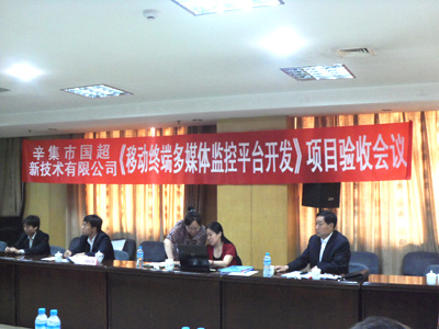 | 2011年6月19日,由河北省科技廳組織,委托辛集市科技局領(lǐng)導(dǎo)主持,邀請有關(guān)專家組成驗收組,對我公司承擔(dān)的河北省國際科技合作計劃項目"多媒體信息整合及管理系統(tǒng)合作開發(fā)"和河北省科學(xué)研究與發(fā)展計劃項目“移動終端多媒體監(jiān)控平臺開發(fā)”進(jìn)行了驗收,與會專家聽取了項目組的匯報,觀看了產(chǎn)品演示,經(jīng)質(zhì)疑答辯和認(rèn)真討論,一致認(rèn)為兩項目均達(dá)到了項目任務(wù)合同書的各項要求,驗收組同意通過驗收。與會專家對兩項目提出了改進(jìn)意見,有效推動了我公司科技創(chuàng)新事業(yè)的發(fā)展。 公司參加驗收的人員有:總經(jīng)理劉占查、綜合事業(yè)部主任尚躍華、軟件研發(fā)部鄧劍、曹晟昀、王森。 辛集市科技局領(lǐng)導(dǎo):趙松巖副局長、田成副局長。 專家組成員有:河北省電子信息技術(shù)研究院院長邊存國、河北科技大學(xué)機電學(xué)院院長崔洪斌、河北省電子信息產(chǎn)品監(jiān)督檢驗院主任許愛國、河北經(jīng)貿(mào)大學(xué)教務(wù)處處長王素貞、河北省軟件評測中心主任趙成林、河北省經(jīng)濟(jì)信息中心李新平處長、石家莊財信會計師事務(wù)所有限責(zé)任公司總經(jīng)理穆敬堯。