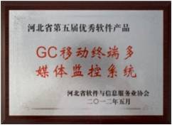 2012年5月《GC移動(dòng)終端多媒體監(jiān)控系統(tǒng)》榮獲《河北省第五屆優(yōu)秀軟件產(chǎn)品》稱(chēng)號(hào)