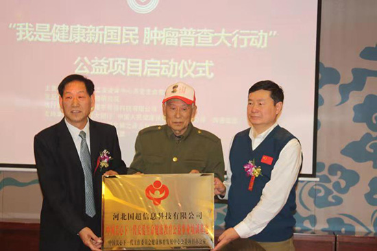 |       公益助力健康,普查防患未然。2018年11月4日,由中國(guó)關(guān)心下一代委員會(huì)健康體育發(fā)展中心關(guān)愛生命教育工作辦公室和吉林生物研究院,北京搭搭手網(wǎng)絡(luò)科技有限公司“我是健康新國(guó)民腫瘤普查大行動(dòng)”在中國(guó)宋慶齡青少年科技文化交流中心正式拉開帷幕。此次腫瘤普查大行動(dòng)是一個(gè)資助性的公益活動(dòng),將覆蓋全國(guó)兩千多個(gè)城市,為近千萬人的身體健康保駕護(hù)航。中國(guó)關(guān)心下一代教育委員會(huì)關(guān)愛生命教育工作辦公室執(zhí)行主任徐照惠、吉林生物研究院副院長(zhǎng)劉曄達(dá)、“健康新國(guó)民”公益項(xiàng)目組委會(huì)秘書長(zhǎng)高波、河北國(guó)超信息科技有限公司董事長(zhǎng)劉占查等出席了此次啟動(dòng)儀式。同時(shí)還邀請(qǐng)到雷鋒剛?cè)胛闀r(shí)的老班長(zhǎng)劉景鳳同志。啟動(dòng)會(huì)上,舉行了組委會(huì)給“學(xué)雷鋒服務(wù)志愿團(tuán)”、“雷鋒文化藝術(shù)團(tuán)”授團(tuán)旗儀式和“中國(guó)關(guān)心下一代生命健康教育公益事業(yè)培訓(xùn)基地”授牌儀式。我公司被確定為“中國(guó)關(guān)心下一代生命健康教育公益事業(yè)培訓(xùn)基地”。